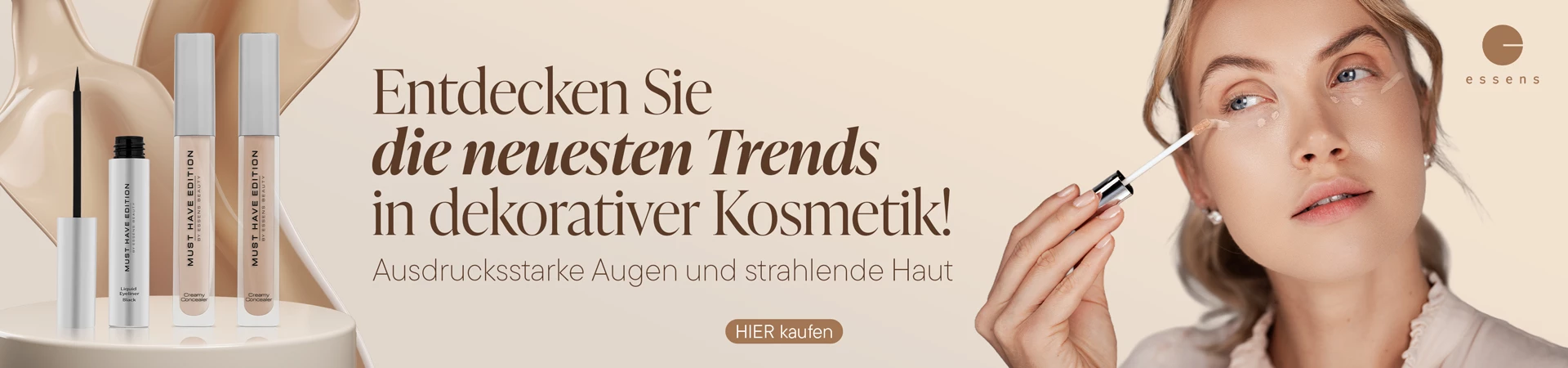 Mehr lesenJeder von uns wünscht sich eine Haut, die gesund, frisch und natürlich schön aussieht. Mit der dekorativen Kosmetik von ESSENS haben Sie die volle Kontrolle über Ihren Look - vom dezenten Alltagslook bis zum Abend-Make-up, das Ihre Umgebung verzaubert. Dank der breiten Produktpalette können Sie Ihre Persönlichkeit durchscheinen lassen, mit Farben spielen und je nach Stimmung und aktuellen Trends experimentieren....
