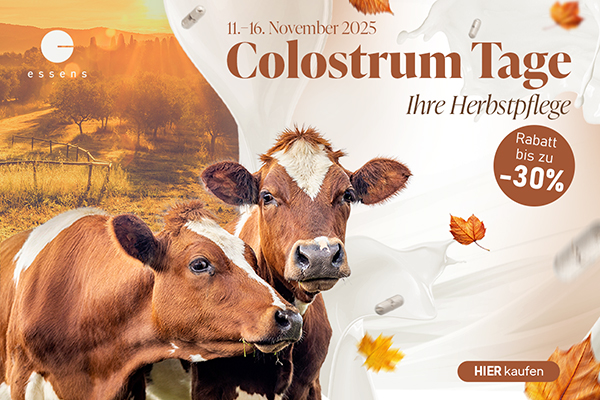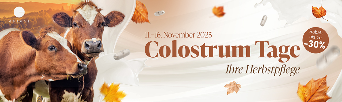 Verwöhnen Sie Ihren Körper in den Herbsttagen mit der wohltuenden Kraft des Colostrums. Nutzen Sie jetzt die einmalige Gelegenheit und sichern Sie sich ausgewählte Produkte der Colostrum Produktlinie mit einem Rabatt von bis zu 30 %. Das Angebot gilt vom 11. bis zum 16. November 2025. Verpassen Sie diese Chance nicht, denn wir möchten Ihnen die außergewöhnliche Pflege bieten, die Ihr Körper verdient.