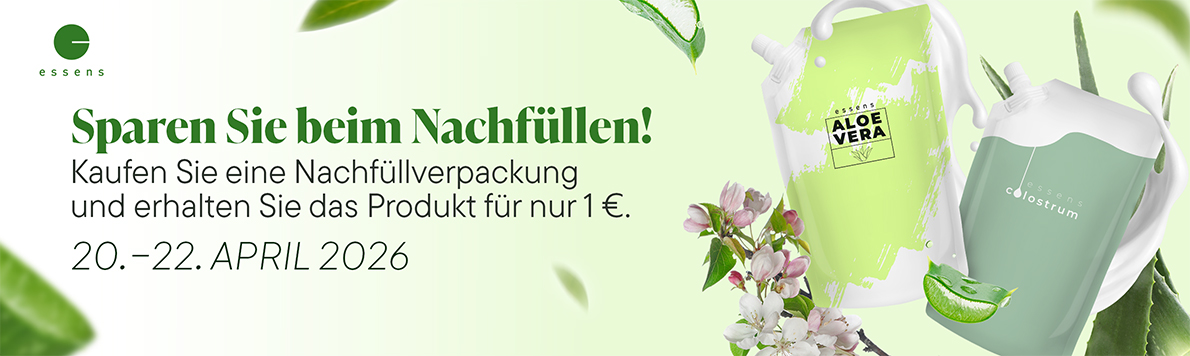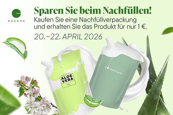 Beim Kauf einer ausgewählten Nachfüllverpackung (500 ml) können Sie jetzt dasselbe Produkt in der Standardverpackung für nur 1 € kaufen.
