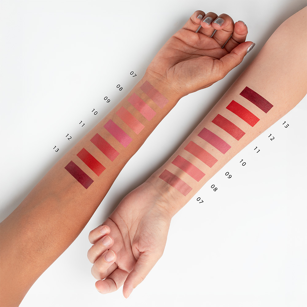 Sie können aus sieben Farbtönen für alle Arten von Make-up wählen, von universellen Nude-Tönen bis hin zu kräftigen Ziegel- und Fuchsia-Tönen.